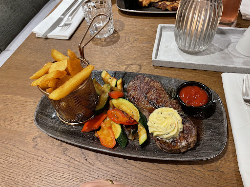 Read moreIch hatte das Roastbeef mit Pommes und Gemüse. Leider war mein Steak nicht, wie gewünscht, Medium-Rare. Es war an den dünneren Stellen Well-done und an den dickeren in der Mitte zwischen Well-done und Medium. Das Steak hat aus meiner Sicht, nach dem Garen auch nicht warm geruht sondern wurde auf den heißen Teller gelegt und dort eine Zeit liegen gelassen, so ist leider viel Flüssigkeit aus dem Fleisch ausgetreten und hat einen unschönen See auf dem Teller gebildet und das Steak ist bestimmt dort noch nachgegart. Das wurde dann sogar in diesem Zustand in den Service gegeben. Die Pommes waren zwar super knusprig aber fettig. Das Gemüse war leider auch nichts besonderes, aber auch nicht schlecht, und konnte den Teller nicht retten. Als Entschuldigung für das missglückte Steak wurde ein Dessert / Kaffee / Schnaps auf Kosten des Hauses angeboten. Auch hier hat der Service wieder geglänzt. Alles in allem weckten das Ambiente und die Karte hohe Erwartungen die vom Service erfüllt, aber von der Küche klar unterboten worden sind. Fazit: Tolles Ambiente, toller Service, interessante Karte, verbesserungswürdige Küche. Das Restaurant ist neu, eventuell muss sich die Küche noch einspielen. Ich komme trotzdem wieder und gebe gerne noch eine Chance auf 5 Sterne. Eventuell hatte ich...