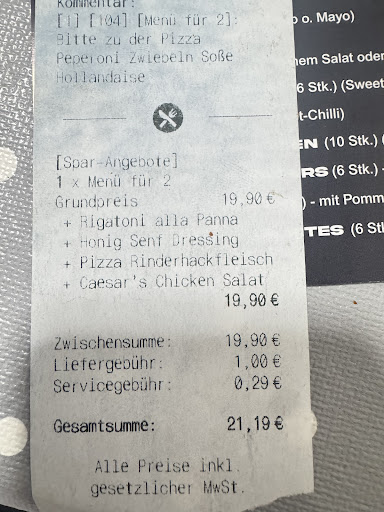 Read moreSchwierig. Wir haben 2 mal Rigatoni Bolognese, Pizzen und Salat bestellt. Die Nudeln waren eigentlich für Kinder gedacht, was will man auch bei Bolognese falsch machen?! Ende vom Lied die Kinder verweigern das Essen, denn die Bolognese war so sehr gepfeffert, dass selbst wir erwachsenen sie gut gewürzt fanden. Bei einem Anruf wurde uns dann erklärt, dass bei ihnen die Bolognese scharf sei. Ja dann sollte das aber auch dabei stehen, denn Standard ist das nicht. Kurz darauf kam ein sehr netter Fahrer der mir das neues Essen brachte, die bereits gelieferten selber probierte und meinte „ja die sind scharf!“ Man konnte die Unmengen an schwarzen Pfeffer im Essen auch gut sehen. Die Pizzen und der Salat waren lecker. Die Fahrer waren...
