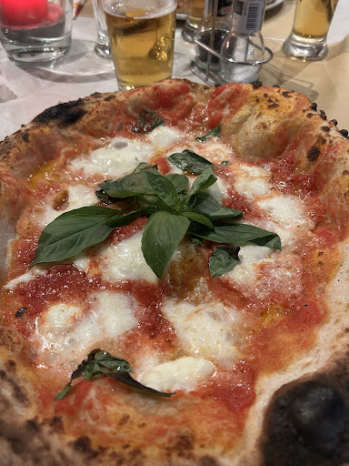 We drove here from Munich. My partner visited Pergola twice before we met and took me here saying, "It is the best pizza you ever had." He was right. Pizza Olivia (tomato pasta, mozarella, spinach, ricotta plus per request extra mozarella Buffalo) was orgasmatic and juicy! Very delicious dough, cheese melting... awwwww...We also shared antipasti Pergola - fresh tomatoes and basil, prosciutto and mozarella Bufallo... I haven't had something like that in 10 years since I don't live in Italy anymore. We came on Easter Saturday around 6 pm. A couple of tables were occupied, and many were reserved. A very charismatic waiter took our order. First drinks and then meals promptly, and we got the food fast, too. Some reviewers write about plastic chairs. Somehow, it is authentic for Italy, especially non touristic places....