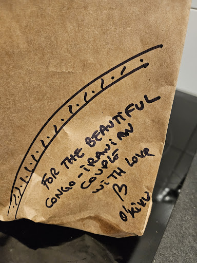 Mention spéciale pour le petit mot glissé dans le sac à emporter, qui a touché ma conjointe en plein cœur. Merci pour cette belle attention. Je recommande ce restaurant à 100 %, les yeux fermés !