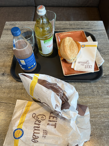 Weitere Kritikpunkte: Die heiße Schokolade schmeckt extrem künstlich und war für uns kaum genießbar. Zudem waren die Preise insgesamt sehr hoch: Zwei Getränke (Wasser und Apfelschorle) lagen zusammen schon bei knapp 10 €. Für zwei Frühstücke mit Getränken haben wir fast 45 € bezahlt, was wir für „nur eine Bäckerei“ sehr überzogen finden – auch wenn die Portionen recht groß waren.