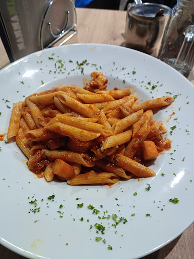 Read moreJe n'ai pas pris l'initiative de traduire la carte (je suis française et la carte est en majorité en allemand) et j'ai commandé une calzone en espérant que les ingrédients de la garniture soient les mêmes que dans toute pizzeria. Qu'elle ne fut pas ma surprise de voir à l'intérieur du thon premier prix très salé, quelques morceaux de jambon sans goût, des grandes tranches de salami industriel rose fluo et quelques morceaux de champignons. Il a fallut presque inventer la sauce tomate dans cette "pizza", la pâte aurait pu être meilleure si elle avait été mieux cuite (sous cuisson), et la garniture c'est ni fait ni à faire le mélange de ces produits bas de gamme ne va pas du tout ensemble et tout est sans goût et excessivement salé. Personne ne m'a apporté une carafe d'eau ni ne m'a demandé si j'avais besoin d'huile piquante (je ne sais pas s'il y en a chez eux) ni n'est venu voir si tout se passait bien. Bref, ceci n'est pour moi pas...
