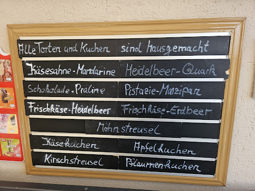 Read moreDer Service war leider sehr schlecht: Bedienung unfreundlich, kurz angebunden, nahm sich keine Zeit und bot nichts an. Torten seien angeblich sehr lecker hieß es zwar. Da kann man aber nur beurteilen, wenn man denn welche bekommt! Ich ging leer aus. Außerdem war von vornherein nicht ersichtlich, ob Alkohol in den Torten ist bzw. z. T. um welche Art von Torte es sich handelt, da die Beschriftungen nicht entsprechende Infos boten oder gänzlich fehlten. In der Zeit, die ich auf jemanden wartete, um die Infos zu erfragen (es war niemand verfügbar), waren alle Torten ausverkauft. Mir wurde zwar die Frage nach Sorte und Inhaltsstoffen beantwortet, aber ohne vorher darauf hinzuweisen, dass eh alle Torten und Kuchen aus sind. Erst als ich eine Torte wählte, wurde mir das sehr unfreundlich eröffnet. Angeblich sei die Schokolikörtorte (Schild "mit Original Irischem Schokolikör") übrigens auch alkoholfrei gewesen. Was stimmt, ließ sich nicht final klären. Als Schwangerer war mur das zu heiß und ich fühlte mich vor den Kopf gestoßen, dass es dann eh nichts mehr gab. In der Pfirsich-Maracuja-Torte war bei meiner Begleitung übrigens kein einziges Bisschen Frucht zu finden. Enttäuschung auf...