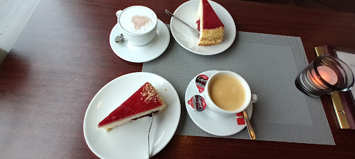 Read moreDer Service war leider sehr schlecht: Bedienung unfreundlich, kurz angebunden, nahm sich keine Zeit und bot nichts an. Torten seien angeblich sehr lecker hieß es zwar. Da kann man aber nur beurteilen, wenn man denn welche bekommt! Ich ging leer aus. Außerdem war von vornherein nicht ersichtlich, ob Alkohol in den Torten ist bzw. z. T. um welche Art von Torte es sich handelt, da die Beschriftungen nicht entsprechende Infos boten oder gänzlich fehlten. In der Zeit, die ich auf jemanden wartete, um die Infos zu erfragen (es war niemand verfügbar), waren alle Torten ausverkauft. Mir wurde zwar die Frage nach Sorte und Inhaltsstoffen beantwortet, aber ohne vorher darauf hinzuweisen, dass eh alle Torten und Kuchen aus sind. Erst als ich eine Torte wählte, wurde mir das sehr unfreundlich eröffnet. Angeblich sei die Schokolikörtorte (Schild "mit Original Irischem Schokolikör") übrigens auch alkoholfrei gewesen. Was stimmt, ließ sich nicht final klären. Als Schwangerer war mur das zu heiß und ich fühlte mich vor den Kopf gestoßen, dass es dann eh nichts mehr gab. In der Pfirsich-Maracuja-Torte war bei meiner Begleitung übrigens kein einziges Bisschen Frucht zu finden. Enttäuschung auf...