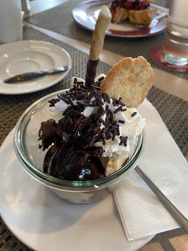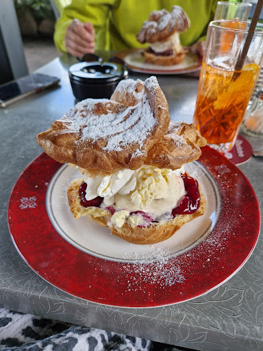 Besonders zu empfehlen sind die hausgemachten Windbeutel – frisch, fluffig und einfach himmlisch! An den wöchentlichen Flammkuchentagen gibt es eine tolle Auswahl direkt aus dem Outdoor-Ofen, herrlich knusprig und geschmacklich top. Auch die restliche Speisekarte ist abwechslungsreich, mit regionalen und saisonalen Gerichten, die mit viel Liebe zubereitet werden. Nicht ganz günstig, dennoch lohnenswert.