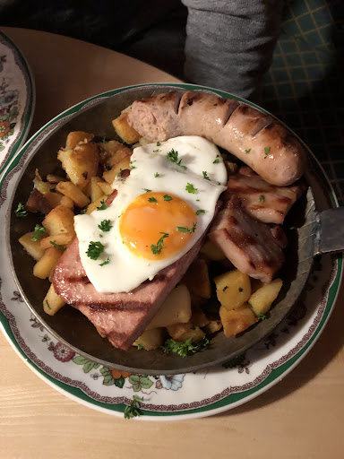 Read moreDie Location an sich ist sehr schön, sowohl der Innen- als auch der Außenbereich. Die Dame im Service war auch nett. Wir würden dennoch nicht wiederkommen. Warum? Nun, aus verschiedenen kleineren Gründen. Die Pfifferlingkarte hängt draußen noch und war maßgeblicher Grund, warum wir für uns das Lokal entschieden haben. Drinnen hieß es dann, die sei nicht mehr gültig. Hm. Dann könnte man sie auch abhängen. Dann hätten wir theoretisch gerne eine Vorspeise gehabt. Die Frage, ob wir auch Brezen ohne Obazda haben könnten (weil wir den nicht mögen) wurde verneint. Eine hilfreiche Alternative wurde uns aber auch leider nicht vom Service angeboten (zB "aber stattdessen könnten wir ihnen Brot oder xyz bringen, wäre das eine Alternative?"). Schade. Dann mussten wir ziemlich lange aufs Essen warten (es wurde gesagt, dass die Bestellung einer Haxe ca 1/2 Stunde dauert, aber es war im Endeffekt wesentlich länger). An sich kein Problem, aber wir hatten echt Hunger... Wir bekamen dann schließlich doch noch Brot mit Butter und Schmalz, allerdings ganz kurz vorm Hauptgericht, nach bereits über einer Stunde warten. Nunja, das Brot hätte man zum "bei Laune halten" ja auch schon eher bringen können... Aber gut.... Die Hauptspeisen dann waren wirklich sehr lecker. Es war dann allerdings inzwischen schon nach 21 Uhr (wir waren gegen 19.15 Uhr da). Nach dem Essen wollten wir dann noch einen espresso bestellen. Das ging dann leider auch nicht mehr, weil die Kaffeemaschine schon ausgeschaltet wurde. Obwohl das Restaurant bis 22 Uhr geöffnet hat und wir ja aufgrund der langen Wartezeit aufs Essen auch keine Chance gehabt hätten den espresso eher zu bestellen. Das hat uns etwas geärgert. Aber vielleicht ist das unter der Woche in einem kleinen Ort wie Kelsterbach einfach so. Andere Gäste hätten sicher keine Probleme mit den Punkten, die uns heute gestört haben und können diesen Restaurant gut und gerne besuchen. Für uns war es heute Abend aber leider die falsche...