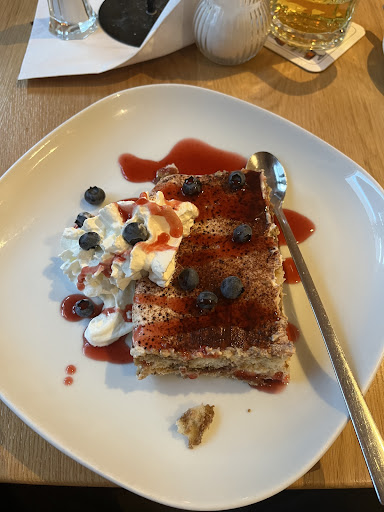 Read moreStepped in 7:30 Thursday night, outside was full and I was happy to find and be seated on a table inside. Waiters and manager were very busy running in and out serving tables, and I’ve got the beer I’ve asked for within 5 minutes. But since then - no one bothered to stop by. Made eye contacts with the servers that passed by dozen times, but nothing… 20 minutes passed and I’ve waived my hand and asked someone to order… I wish that from here it’ll get better, but unfortunately the “spezial” pizza was just meh. Very little pepperoni and mushrooms, and enough peppercini all around. Dough was well baked, but overall taste - just average. Hoped that their home made tiramisu will be a nice compensation, with a nice shot of espresso and now the place was already half empty. Espresso arrived after a couple of minutes, and 10 minutes later reminded the waitress of the tiramisu. She said it’ll arrive soon… Too bad the espresso was long gone before the tiramisu arrived. As you can see in the picture, the tiramisu was a nice portion and fairly tasty, but never had a tiramisu with fruit sauce and blueberries… thought and believe it should be coffee / cocoa scented and flavored. Anyway, what I could see during all that time is very nice plated dishes moving around, nice portions and fair pricing, but the overall experience was...