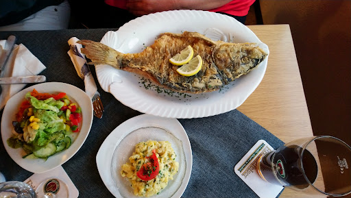 Wir haben 9 Leberknödelsuppen bestellt, aber nur 7 erhalten. Da man hier wie am Fließband bedient wird und schon die Hauptspeise vor die Nase gedrückt bekommt, bevor man auch nur ansatzweise mit der Vorspeise fertig ist, hatten wir nicht mal eine Gelegenheit die fehlenden Suppen nachzubestellen. Man möchte die Vorspeise ja auch nicht nach oder zeitgleich mit dem Hauptgericht essen. Die Fischgerichte waren sehr lecker, aber die Schnitzel waren durchschnittlich. Der Kartoffelsalat schmeckte nach Dosenfutter. Wir haben im Vorfeld extra telefonisch eine vegane Speise bestellt. Es wurde einfach nur angebratenes Gemüse serviert, ohne Soße oder sonstige Würze, aber immerhin wurde überhaupt was Veganes serviert. Bei der Nachspeise wollten wir ausdrücklich kein Vanilleeis, sondern Haselnusseis und die Bedienung war sichtlich nicht begeistert von diesen Wunsch, aber meinte es sei kein Problem. Der Eisbecher wurde natürlich trotzdem mit...