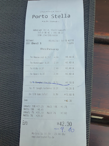 Read moreIf you're looking for a restaurant that feels like a home away from home, Porto Stella in Kemnath, is the place to be. From the moment you step inside, you're embraced by the warmth of its incredible staff, who go above and beyond to make every guest feel like family. Their professionalism, friendliness, and genuine hospitality create an atmosphere that is both inviting and unforgettable. The menu at Porta Stella is a true celebration of flavor, offering a fantastic variety of dishes that cater to all tastes. But if there's one thing that steals the show, it's the pizzaâcrafted to perfection with fresh ingredients, a masterfully baked crust, and flavors that transport you straight to Italy. The chefs here are nothing short of culinary artists, turning each meal into a masterpiece that leaves you eager to return. Beyond the exceptional food, the service is impeccable. Every visit is marked by attentiveness, warmth, and a dedication to making your dining experience special. Whether you're a regular or a first-time guest, the staff's genuine kindness ensures that youâll feel right at home. Porto Stella is more than just a restaurantâit's a place where great food and heartfelt hospitality come together in perfect harmony. Highly...