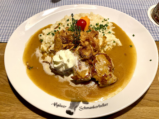 Die Speisekarte bietet eine kreative Auswahl klassischer und moderner Gerichte. Besonders empfehlenswert: das Zwiebelrostbraten mit hausgemachten Spätzle – perfekt auf den Punkt gegart. Auch vegetarische Gerichte sind nicht nur Beilage, sondern vollwertige, geschmacklich abgestimmte Hauptspeisen. Die Zutaten sind frisch und saisonal, die Präsentation auf dem Teller ist ansprechend und durchdacht.