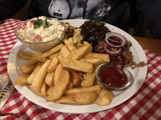 Read moreWir waren das erste und wohl auch das letzte Mal dort und verstehen den Hype, der um dieses Restaurant gemacht wird, nicht so ganz. Der Reihe nach: Platz gibt es nur mit Vorbestellung im Viertelstundenrhythmus und man bekommt tatsächlich auch den Tisch erst, wenn es so weit ist. Ist man früher dort, wird man draußen zum Warten aufgefordert. Ok, die Hütte ist tatsächlich voll und das Rein und Raus ist generalstabsmäßiges Fließband. Leider hatten wir es versäumt, vorher die ganze Website zu studieren und so stellten wir erst dort fest, dass es nur Pepsi gibt und ebenso, dass es in dem Ur-Amerikanischen Restaurant keine Steaks, keine Spare Ribs, sondern eigentlich nur Burger gibt. Bestellt hatten wir also zwei Cola, einen BadAss Cheeseburger und ein Cowgirls Favorite. Zur Cola ist zu sagen, dass es dort nur Pepsi gibt und dass bei Pepsi leider jede Sorte Cola Süßstoffe enthält. Da einer von uns sehr allergisch darauf reagiert, war die Freude auf eine kalte Coke schnell verflogen und natürlich gab es keinerlei süßstofffreien Ersatz. Sehr enttäuschend. Das Essen empfanden wir beide als sehr salzig. Seien es die Fries oder das Burgerfleisch, das zudem ziemlich trocken war. Das Cowgirls Favorite war gerupftes Hühnchen, das wir auch zu Hause mit dem Slowcooker schon mindestens ebenso gut hin bekommen haben. Nur hier ebenfalls sehr salzig. Mangels einer süßstofffreien Coke zum Nachspülen war unser Besuch relativ schnell beendet. Nein, wir hatten keinen Appetit auf Wasser, Fanta oder sonstwas. Für uns gehört zum Fleischessen eben 'ne kalte Coke. Im Nachhinein stellen wir uns allerdings noch mehr Fragen: Es will ein amerikanisches Restaurant sein, aber es gibt weder Steaks noch Spare Ribs. Im Gegenteil wird mit edelstem Fleisch, natürlich zu "angemessenen" Preisen geworben, dann wird das aber durch den Wolf gedreht, zu Patties geformt und auf ein ziemlich trockenes Brötchen mit Sauergurke und Tomate gelegt?! Ich hätte gerne viel Geld für ein richtiges Wague-Steak oder Dry-Aged Fleisch gezahlt, aber gewolft in einem trockenen, versalzenen Burger mit Sauergurke ist nicht mal mehr feststellbar, um was es sich tatsächlich handelt. Wir wollen nicht mutmaßen, was dort wirklich drauf lag, denn etwas besonderes offenbarte sich absolut nicht. Unser Fazit ist, dass wir schon viele sehr gute Steaks und auch bessere Burger gegessen haben. Wer es mag, teures Fleisch nicht mehr erkennen zu können und zu glauben, dass so ein amerikanisches Restaurant funktioniert, kann den Aufenthalt dort bestimmt genießen. Für uns war es...