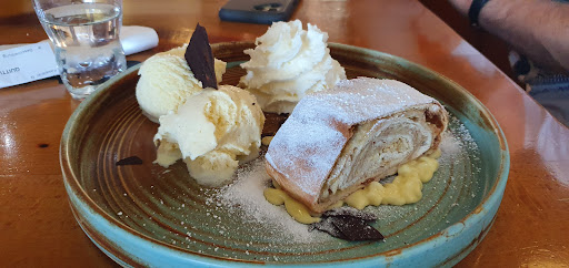 Read moreDa ich oft in Kerpen wegen Kartfahren bin, besuche ich diese Sportsbar ziemlich oft und kann nur positives berichten. Bis jetzt habe ich von der Karte nur die Bürger probiert und ich muss sagen, dass sie wirklich ausgezeichnet schmecken. Im Dezember hatten wir auch mit unserem Club ein Event dort veranstaltet, wo für uns ein Buffet gerichtet wurde. Das ganze bestand aus: Bruschetta, Salatbuffet mit zweierlei Dressings als Vorspeise, Hähnchenbrustfilet in Tomato Pesto, Roastbeef in Rotweinsauce, Schweinerückensteak in Pfeffersauce als Hauptgang, Wedges und Kartoffelgratin als Beilage und Panna Cotta und Tiramisú als Dessert. Alles hat wirklich hervorragend geschmeckt und alle Gäste waren sehr zufrieden. Die Location an sich ist echt cool und die verschiedenen Bildschirme um Sportevents zu schauen sind auch optimal platziert. Das Personal war immer sehr freundlich und ich kann deswegen diese Sportsbar...