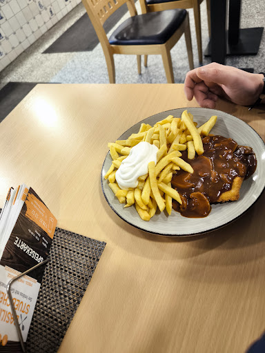Read moreRelativ kahl gehaltener Imbiss; leider mit äußerst frechem Personal! Bei einem kurzen Besuch in Kevelaer wollten wir hier eine Kleinigkeit essen und wurden unmittelbar von einer älteren blonden Dame hinter der Theke keifend angegangen. Das habe ich noch nirgendwo so erlebt!