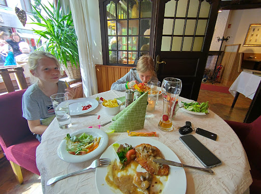 Geht dort bloß nicht hin. Zu teuer für die Leistung und das Essen. Service ist unterirdisch schlecht, sowas habe ich noch nicht erlebt. Erst fehlten die Pommes zu meinem Gericht, es war auch keine Servicekraft mehr in Tischnähe, so dass man zeitnah hätte reklamieren können, musste mein Schnitzel also ohne Beilage verzehren, damit es nicht kalt wurde. Und als sich dann endlich jemand bequemte uns wieder zu bedienen (ca 30 Minuten später), und wir uns beschwerten, hieß es, die Pommesschlüssel (die zwischen zwei anderen Gästen an unserem Tisch hingestellt worden war) wäre für alle Beteiligten gewesen und ich sollte erstmal (die noch rund 10 kalten) Pommes aufessen, bevor frische nachgeliefert werden. Sorry Leute, für über 20 Euro pro Person, erwarte ich eine vollständige Mahlzeit und nicht nur ein Schnitzel und die Reste der anderen am Tisch. Für 5 erwachsene Personen, die ein Gericht mit Pommes bestellt haben, nur 2 kleine Schüsseln, da hatten ja selbst die Kinder auf ihren Kindertellern mehr Pommes (wieso hatten die eigentlich die Pommes direkt auf dem Teller und nicht auch eine Schüssel?????). Und dann die unterirdische Reaktion auf die die Beschwerde, ich solle erstmal die kalten Pommes essen und mich früher melden (was ich ja übrigens gerne gemacht hätte, wenn ihr euch nicht versteckt hättet), danke ich bin mehr als bedient. Mich habt ihr als Kunde verloren und ich kann niemanden guten Gewissens empfehlen hier essen zu gehen, obwohl das Essen eigentlich gut ist, wenn man denn auch alles bekommt, was man bestellt........ Meine Meinung, wenn man nach einem Essen von über 20 Euro in einem gutbürgerlichen Restaurant anschließend noch zur nächsten Pommes Bude muss, weil man Kohldampf hat, dann kann man sich das Geld fürs Restaurant besser...