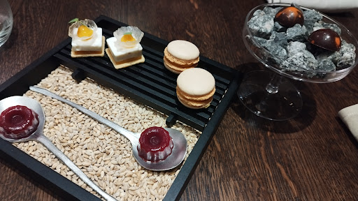 Wir hatten einen super Abend im Ahlmanns. Das Lokal ist modern schlicht mit Auge fürs Detail eingerichtet und sehr gemütlich. Absolut hervorzuheben ist das tolle Team, welches eine gleichberechtigte Struktur verkörpert. Nicht nur ist das ganze Team präsent am Gast, der Chefkoch ist sich auch nicht zu schade einmal das Tablett für seine Kollegen zu halten, damit diese den Gang annoncieren können. Insgesamt ist das Team sehr jung, lässt aber dennoch keinerlei Professionalität vermissen und stellt sich sehr gut auf die Gäste ein. Hier haben wir uns direkt zuhause gefühlt. Die Gerichte sind bodenständig und verkörpern Gourmet-Küche ohne abgehobene Attitüde. Es werden grundsätzlich gelernte Geschmäcker, wie "Birne, Bohne, Speck" zeitgemäß interpretiert und perfekt auf den Punkt gebracht. Der geübte Gourmet mag kulinarische Ausrufezeichen vermissen, Ziel scheint im Ahlmanns eher bodenständige Kulinarik perfekt darzubieten und so auf ein neues Level zu heben. Dies macht es aus meiner Sicht ideal als "Einstiegs-Gourmettempel" und als regelmäßiges Erlebnis. Die Gerichte sind unkompliziert zu verstehen und dürften nahezu jeden abholen können. Gleichzeitig sind die Gerichte pointiert genug, um ein bleibendes Geschmackserlebnis zu produzieren. Auch 1,5 Wochen nach meinem Besuch ist mir etwa der Seeteufel im Pancetta mit Birne und Speck noch voll präsent. Auch der Grüne Apfel mit Süßholz-Creme liegt noch auf der Zunge. Andere Gerichte, wie die Steinpilze auf Spinatwaffel mit Ziegenkäse, bleiben bei mir weniger mit facettenreichem Geschmacksbild als mehr als wohlige Umami-Gesamtheit in Erinnerung. Die Getränkebegleitung zu sehr fairen Preisen (ca. 10€ pro 0,1l Glas) wird Gang-weise empfohlen und beinhaltet neben einer alkoholischen Empfehlung stets auch eine alkoholfreie, meist selbst komponierte, Variante. Dabei ist die, regelmäßig auf Teebasis arrangierte, alkoholfreie Variante eine gleichwertige Wahl und wird mit viel Herzblut ausgewählt und hergestellt.
