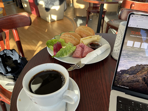 Von besonderer Relevanz war die suboptimale Qualität der servierten Getränke. Meine Begleitung und ich orderten jeweils eine heiße Schokolade, die in der Karte für 5,10 € mit "echter Milch" angepriesen wurde. Die gustatorische Erfahrung divergierte jedoch erheblich von den Erwartungen an eine authentische heiße Schokolade. Die Getränke präsentierten sich als stark verwässert und vermittelten den Eindruck einer exzessiven Verdünnung. Das verwendete Kakaopulver wies geschmacklich eine fragwürdige Qualität auf und evozierte Assoziationen zu minderwertigem Back-Kakao, inklusive des dafür charakteristischen, wenig ansprechenden Nachgeschmacks.