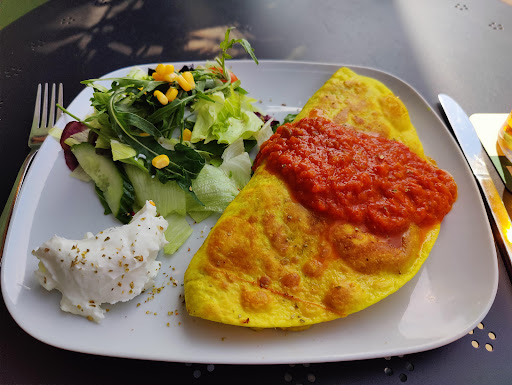 Erste Enttäuschung, na gut, man wollte aushelfen und die "Frühstückskarte" reichen (verschiedene Eigerichte, generelle super Idee) diese Karte wurde nicht gefunden, daher durften wir auf einem Handy schauen.. 🙄 Na gut, kann man drüber hinwegsehen. Ein Sonderwunsch bzgl. Speck wurde besprochen, letztendlich aber nicht erfüllt, auf Nachfrage wurde der Gast nicht als König behandelt, sondern ausreden gesucht.
