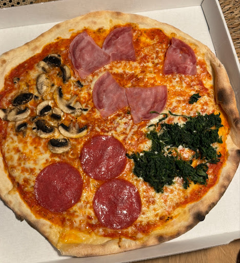 Die Pizza dort ist wirklich gut, wenn man den richtigen koch erwischt. Oft ordentlich belegt aber manchmal denkt sich der Koch wohl "heute Mal nur 3 Stücke anstatt 20".
