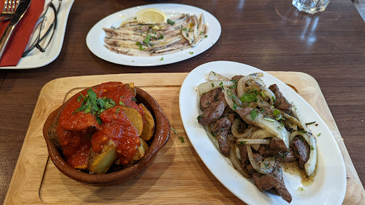 I had steak from Argentina, the Anchovies and patatas bravas... plus some bread with Aioli. The temperature of the steak was spot on, loved the simple vinegar dressing of the Anchovies and the sauce of the potatoes was quite hot but absolutely delicious.