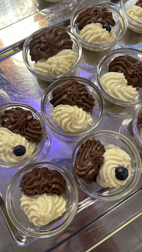 Uns wurde das 3-Gänge-Überraschungsmenü empfohlen, begleitet von einer sorgfältig abgestimmten Getränkebegleitung – sei es Wein oder alkoholfreie Getränke. Als Auftakt gab es einen Gruß aus der Küche (Bruschetta) – perfekt zu den warmen Temperaturen. Als Vorspeise servierte man eine köstliche Paprika-Schmandsuppe, die wir wärmstens empfehlen können. Der Hauptgang bestand aus zartem Rinderfilet, begleitet von einer Portweinschalottenjus sowie einer alkoholfreien Variante, dazu Pilzgemüse und perfekt zubereitete Drillinge. Das Dessert war ein verführerischer Schokoladenkuchen mit Schmand, Karamellsauce, Kirschkompott und Walnüssen – ein wahrer Genuss für die Sinne.
