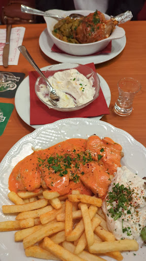 Mein Essen war okay. Hab schon einmal besseres Gyros gegessen. Die Pommes und das Gyros hätten knuspriger sein können. Mein Gyros sah nicht aus als es ob angegrillt (knusprig braun) gewesen wäre. Fleisch sah an jeder Seite ziemlich grau aus. Ich kenne das von anderen griechischen Restaurants anders, dass das Fleisch schön von einer Seite angegrillt ist. Gyros mit Metaxasoße (für meine Freundin) war ziemlich viel Käse und wenig Fleisch und das für 16 Euro fanden wir etwas teuer. Wir fanden, dass die Pommes hätten etwas länger frittiert werden können.
