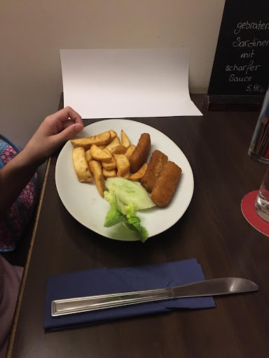 P.P.S.: Auf dem Foto ist der Piraten-Teller für 7,00 Euro zu sehen. Laut Speisekarte sollen es panierte Fischfiguren sein, ich kenne keine Fischart die so...