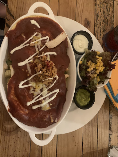 Read moreI had Enchiladas with chicken. I’m sorry to say that but it wasn’t tasteful at all. Was very disappointed, because always whenever I go to mexican restaurant the food has a strong and spicy taste. My meal had any spices, even basic spices were missing there like salt for example... all the ingredients were tasting the same. As well, vegetables were canned and not fresh. My mom had Burrito with chicken and her opinion was the same. However my friend had Burrito with beef and it was a little bit better. Service and atmosphere...