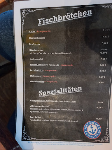 Leider hat sich das Schiffercafé stark verändert. Sicher zwingen die Folgen der Coronamaßnahmen alle Restaurants dazu Preise und Personalbestand anzupassen. Man kann es aber auch übertreiben. Wir waren am Samstag den 06.03.2022 bei tollem Wetter da und das Schiffercafé war, wie zu erwarten, gut gefüllt/voll. Dennoch gab es nur eine Servicekraft am Tresen die natürlich Schwierigkeiten hatte, die Schlange abzuarbeiten. Das dabei die Freundlichkeit auf der Strecke bleibt ist da fast schon verständlich, war aber bei diversen Kunden vor mir kein Einzelfall. Nach 15 Minuten Wartezeit in der Schlange konnten wir dann bestellen. Meine Begleiter und ich hatten sich eigentlich auf die Currywurst mit Pommes gefreut. Die gibt es auf der Karte nicht mehr. Als herzhafte Alternative ohne Fisch, (es mag nunmal auch im Norden nicht jeder Fisch) gibt es nur die überbackenen Baguettes. Da ich nach der Wartezeit keine Lust hatte auch noch Ewigkeiten auf ein überteuertes Salamibaguette (Für knapp 10€. Da bekommt man woanders schon eine ganze Pizza...) zu warten habe ich auf das Essen ganz verzichtet und meine Begleiter haben sich für verschiedene Fischbrötchen entschieden. Auch hier haben es die Preise mittlerweile in sich. Das Lachsbrötchen war wohl ganz okay, auch das Bismarckbrötchen war befriedigend. Das Backfischbrötchen allerdings war echt schlecht. Extrem viel Panade, die nicht richtig durchgebacken war. Zudem war die Panade scharf gewürzt. Davon wird auf der Karte allerdings nichts gesagt. Die freundliche Reklamation beim Personal wurde mit "Das ist dann wohl so, man kann nicht jeden Geschmack treffen. Geschmäcker sind halt verschieden" beantwortet. Super. Fast 10€ in die Restetonne geworfen um dann hungrig aus dem Lokal zu gehen. Das die beiden bestellten Kakao kalt, und das Bierglas, welches wir zum Flensburger dazu bekamen schmutzig war rundete dann das Bild ab. Naja, schon gut wenn man auch einfach aus der Flache trinken kann.