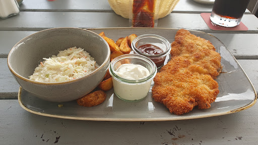 Das ,,XXL" Schnitzel war auf die Größe eines damaligen Standart Schnitzels geschrumpft, der Preis bei 18,00 Euro 💶💶💶 aber fast auf das Doppelte gestiegen. Macht rechnerisch eine Preissteigerungen von fast 400 Prozent! 😭😭😭 Unglaublich und dann auch fast kalt und so gut wie kein Eigengeschmack.