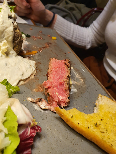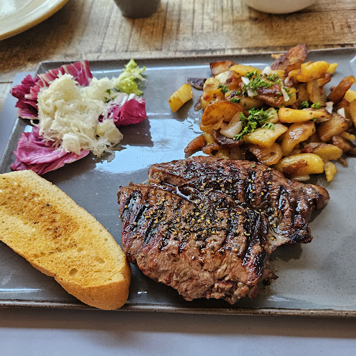 Read moreGoogle Behauptet (Ohne Beweis zu führen) ich hätte gegeb irgendwas verstoßen. Die ominösen Standarts. Sie behaupten ja auch sie würden nichts zensieren. Was ist also schief gelaufen, dass meine Bewertung nicht veröffentlicht wurde? Hier also mein 2. Versuch. Wir waren zu Viert am Samstag den 30.04.22 im Steakhouse. Zunächst muss gesagt werden, die Räumlichkeiten sind gut, der Service war sehr freundlich und hilfsbereit. Allerdings sahen wir in der Preußerstr. am Eingang ein Schild, man solle von der Seite Dreiecksplatz eintreten. Man belehrte uns, dass dies so nicht sein solle. Allerdings kamen nach uns sehr viele Gäste, die den Hinweis auch so "falsch" verstanden hatten. Nun gut nur ein kleines Ärgernis. Bedient wurden wir von einer stattlichen Kellnerin die äußerst hilfsbereit und liebenswürdig war. Das Mobiliar tut nichts zur Sache, es war modern und schlicht.(Wir saßen in dem Neubau vorne am Dreiecksplatz.) Als es ans bezahlen ging hakelte der Service etwas, da Bestellungen neuer Gäste vorgezogen wurden. Ob das sein darf oder kann mag jeder für sich selbst entscheiden. Das alles kann man zwar bemäkeln, ist aber nicht wirklich Grund für eine mäßige Bewertung. Aber, es gibt ja immer eine Aber. 2 Personen waren mit ihrem Essen zufrieden jedoch muss man sagen, die gerösteten Brotscheiben waren ein Skandal. Hält man die Kundschaft wirklich für so strunzhaferl dumm? Man servierte Brot, dass eindeutig schon alt und /oder was noch schlimmer wäre schon einmal serviert wurde. Der Geschmack von altem Brot ist unverkennbar, ganz zu schweigen von dem Umstand das die Scheiben schon in alle Richtungen verbogen waren. Warum unter den Bohnen etliche bereits grau angelaufen waren wird ein Küchengeheimnis bleiben, ebenso die Tatsache, dass unter den Pommes ebenfalls etliche bereits aufgeweicht / labberig waren. Will man uns sagen, dass aus der Fritteuse zwei verschiedene Sorten Pommes...