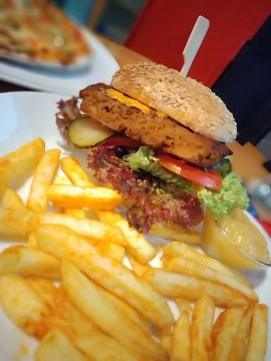 Die vegane Currywurst war nicht ganz nach unserem Geschmack. Sie ist innen sehr weich, fast flüssig, und außen fehlt der Biss. Das Gyros war sehr fettig und der Salat dazu im Vergleich schon etwas langweilig gewürzt. Der vegane Cheeseburger war sehr lecker, jedoch hätte ich mir ein Burgerbun gewünscht, welches etwas eindrucksvoller ist. Es war sehr flach und brüchig, wie ein flaches, kleines Pita-Brot. Die Saucen waren sehr lecker. Die Portionsgröße der "wahren Pommes" ist deutlich kleiner, als die der normalen "Pommes", wenngleich die wahren Pommes nochmal 1,20€ mehr kosten als die Pommes(4,80€ vs. 3;60€). Das Personal war freundlich und bemüht, hat jedoch einen Teil der Bestellung vergessen zu bringen, worauf wir es nochmal ansprechen mussten. Der Tisch wurde vor uns schnell abgeräumt, jedoch leider nicht gewischt, weswegen die Oberfläche etwas klebte. Ansonsten war der Besuch sehr interessant, da sich vor Ort viele, sehr unterschiedliche Menschen begegnen. Für Menschen, die sich in der Umgebung von konservativer Kleidung und Hautgestaltung wohler fühlen, ist dieser Ort...