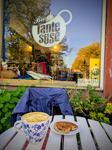 Read moreTante Suse der Biosk in der Wik in Kiel, das ist wirklich ein Traum! Für mich einer der schönste Ort in Kiel. Oft kehre ich bei Suse ein! Sie strahlt immer, sie ist das Herz des Ladens. Der Cappuccino den ich oft genieße ist extrem lecker und dann dazu noch eine Zimtschnecke ...unglaublich! Am Morgen oder Mittags dann gerne draussen in der Sonne. Mittags ist dort meist ein reges Treiber. Wundervoll! Heute gab es Quiche mit Salat oder eine Linsensuppe. Bin sonst nicht so der Suppenfan aber habe mich dann doch für die Bio-Suppe entschieden. Und sie war sehr fein. Ach kann man natürlich viele Bioprodukte bei Suse zum mitnehmen kaufen. Die Atmosphäre bei Tante Suse ist sehr gemütlich und sehr persönlich. Auch am Nachmittag lohnt sich eine Reise zu Tante...