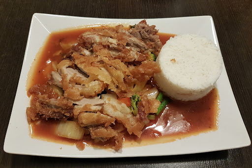 Read moreEssen zum Abholen geholt. Bestellung am Telefon verlief gut und alles wurde richtig verstanden. Die Wartezeit war für ein Wochenende, mit 45 Minuten, wohl auch noch okay. Allerdings empfanden wir die Portionen als recht klein und der Reis war viel zu wenig. Auch die Portion gebratenen Nudeln, waren unverhältnismäßig wenig. Die Soßen waren vom Geschmack sehr pfad und wässrig. Als wir Zuhause waren, war das Essen leider auch schon kalt, was daran liegen mag, dass das Essen nicht sonderlich wärmespeichernd verpackt war... ist eine Pizza im Pizzakarton aber auch nicht! (Gut fanden wir, dass für den Transport keine weiteren Plastiktüten verwendet wurden, sondern die Gerichte in ihrer Verpackung, in einem Pappkarton mitgegeben wurden.) Das Ambiente selbst war eigentlich recht angenehm, doch haben wir wohl einen schlechten Tag erwischt, zwischen den Angestellten schien schlechte Stimmung zu herrschen und das hat sich leider auf die gesamte Stimmung übertragen. (Vielleicht einfach mal einen schlechten Tag erwischt.) Der Imbiss war aber gut gefühlt und die Gäste dort wirkten zufrieden.