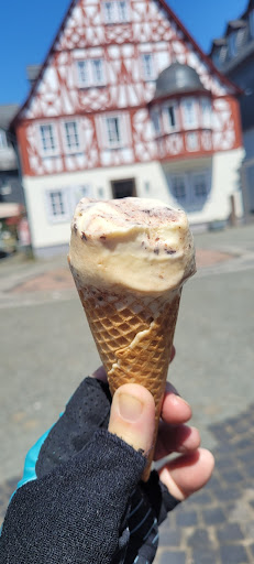 Read moreEin wunderschönes kleines Eiscafé mitten in Kirchberg mit malerischen Fachwerkbauten, urigen Kirchtürmen und einer kleinen, feinen Eiscafé-Terasse. Parkplatzmöglichkeiten vorhanden, wir konnten die Motorräder auch sehr dicht ran stellen, ohne dass sich jemand störte. Sehr freundliche Bedienung, Toiletten vorhanden. Leider nicht behindertengerecht (aber die Damen haben einer beeinträchtigen Frau sehr fürsorglich auf der Terasse weitergeholfen; also gerne um Hilfe bitten). Wir haben uns sehr wohl gefühlt und besuchen das malerische Kirchberg...