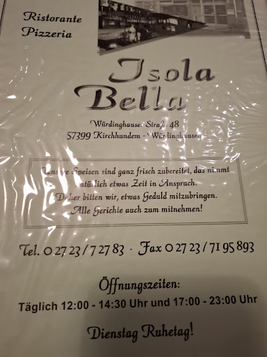 Das Isola Bella ist ein familiengeführtes italienisches Restaurant. Die Betreiberfamilie stammt aus Salerno, der Küstenstadt am Tyrrhenischen Meer unterhalb von Neapel. Die umfangreiche Speisenkarte weist von Vorspeisen und Salaten üben Fisch, Fleisch-, Nudelgerichte und Pilzen auch Kindergerichte aus. Daneben werden spezielle Tagesgerichte angeboten. Das Personal ist sehr freundlich. Alle Speisen werden frisch zubereitet insofern sollte man für Mittag- bzw. Abendessen etwas mehr Zeit einplanen. Der Service ist schnell und das Essen durchweg lecker. Einige kostenfreie Parkplätze befinden sich direkt vor dem Haus. Uns ist die geschmackvolle Dekoration der Tische mit frischen Frühlingsblumen angenehm aufgefallen. Wir können das Isola Bella mit den preiswerten und schmackhaften ‚Gerichten insofern gerne...
