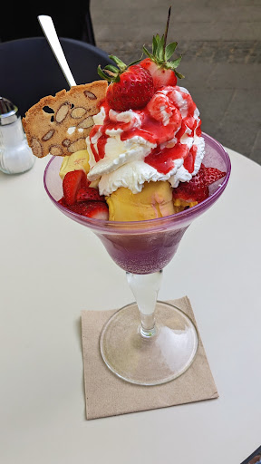 Fazit. Schöne wirklich italienische Eisdiele mit tollen Mitarbeitern. Super Essen und Öffnungszeiten die selbst an sonn und Feiertage geöffnet haben. Sehr zu empfehlen....