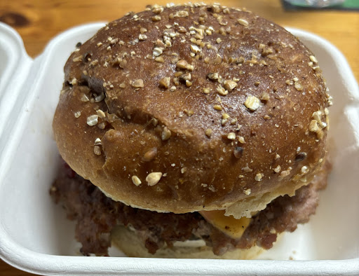 Für unsere Tochter gab es einen Cheeseburger, der schön groß und sehr lecker war. Vom Preis-Leistungsverhältnis für 7,50 wegen der Qualität und Größe in Ordnung. Mein Mann hatte einen Bacon-Cheeseburger, gleiche Größe wie beim Cheeseburger und für 8,50 wegen dem Bacon auch noch in Ordnung. Auch dieser sehr lecker. Für 3,50 extra gab es eine Portion Pommes, welche auch sehr gut waren und eine Fritz-Kola. Ich habe mir einen Cranberry Goat-Cheeseburger, siehe Bild, ausgesucht. Dieser kostet 10,50. Ich verstehe, dass dieser wegen der extravaganten Zutaten etwas teurer ist, aber nicht, dass er um einiges kleiner ist als der normale Cheeseburger, Das hat mich etwas enttäuscht. Er war wirklich sehr lecker, aber für den Preis und die Größe würde ich ihn nicht mehr kaufen. Fazit: Bestselling mit Liefern würden wir für die Cheeseburger evtl. ein nächstes Mal ausprobieren. Aber vor Ort glaub ich eher nicht dass wir es nochmals probieren. Eigentlich schade, da das Lokal echt Potential hat. Die 4 Sterne nur wegen der Qualität der Burger und weil das Lokal echt schön hergerichtet ist, aber zu kalt zum Bleiben. Vielleicht im Sommer :)