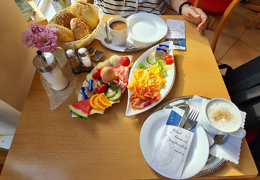 Read moreNicht gut! Der eine Stern ist für die nette, junge Bedienung, die sehr bemüht war. Das Frühstück war leider sehr, sehr schlecht!! Leider war es nicht möglich, statt Wurst Käse oder Marmelade zu bekommen. Es wäre alles abgezählt. Für das Rührei statt dem Speck war es aber möglich. Merkwürdig. Gläser, Tassen, Besteck so, so dreckig!!! Sowas habe ich noch nie erlebt!! Fettfingerabdrücke und Getränkereste deutlich zu sehen. Spülmaschine defekt? Servietten auf den rostigen Tabletts werden offensichtlich mehrfach verwendet. Viele Flecken darauf zu finden. Ebenfalls auf den Einsteckhülsen für das Besteck. Warum macht man das?? Auf den reservierten Tischen im Innenbereich waren Brötchenkörbe und Saft bereits in den Gläsern bereit gestellt. In den Saftgläsern schwammen die Fruchtfliegen. Sehr ekelig!! Beim Bezahlen wollte man noch fast 10€ mehr abrechnen. Auf den Hinweis, dass das nicht stimmt, wurde noch mal nachgerechnet. Nicht empfehlenswert!! Das Frühstück war einfach nicht geniessbar!!