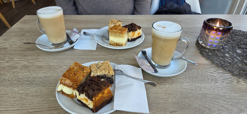Ein gemütliches kleine Café mit wenigen Tischen. Aber ein sehr leckeres Frühstück mit gutem Kaffee ☕️. Und die beste Nussssahnetorte die ich je gegessen habe. Wenn wir im Mai wieder in Boltenhagen sind werden wir dort wieder einkehren. Unser Dackel kennt den Weg denn wo hat er schon jemals Leckerchen auf einem Teller mit Serviette serviert bekommen. Wir waren bzw sind wieder im Mai dort frühstücken gegangen und sind wieder begeistert von dem leckeren Frühstück . Kein Plastikkäse und super leckeres 😋 Rührei. Als ich nach der leckeren Nusssahnetorte Ausschau hielt bekam der super nette Betreiber das mit und versprach sie fürs Wochenende. Wo gibt's das noch das Kundenwünsche so nett und promt erfüllt werden oder überhaupt. Einfach toll dort zusitzen und sich verwöhnen zulassen. Sieht unser Dackel übrigens auch. Sind mittlerweile schon länger wenn wir im Urlaub sind zum Frühstück immer noch super gerne dort weil nach wie vor sehr lecker 😋. Aber die super nette Betreuung ist einfach ein Highlight. Danke für das unkomplizierte Erfüllungen auch von Sonderwünschen . Und danke danke danke für die Überraschung. Es ist immer eine Freude bei euch...
