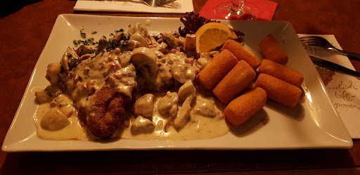 Ich bekam dieses Lokal von der Frau des Geschäftsführers dieses Lokals empfohlen. Das Essen sei sehr gut, die Portionen riesig und auch die Salate seien sehr zu empfehlen. Tja. Ich bestellte mir das Kochkäseschnitzel das die Bekannte hochlobte mit Kroketten. Geschmacklich war das Essen tatsächlich gut. Die Schnitzel waren 2 kleine panierte Schnitzel für einen Kinderteller und der Salat zur Beilage waren Reste eines Eisbergsalates mit Tomatenscheiben die vielleicht ein bischen zu lange im Wasser lagen. Naja. Als ich fertig war rief ich die Kellnerin zum bezahlen. Ich gebe immer gerne mindestens 2 bis 3 €. Hier war klar das ich kein Trinkgeld gebe. Das essen mit Getränk kostete 20,90€. Ein Betrag den ich, wenn ich mich wohlgefühlt hätte auf 25 €aufgerundet hätte. Hab ich nicht. Ich legte Ihr bewusst 21 € auf den Tisch ohn eine weitere Aussage. Anstatt mir das Rückgeld zugeben, behielt Die die 10 Cent einfach ein. Ich sagte Ihr darauf, das ich nicht vorhabe Ihr Tipp zugeben und ich die 10 Cent haben möchte.