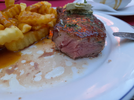 Read moreWar zum ersten Mal im Rebstock und bestimmt auch zum letzten mal. Samstag Abend 18.30 sind wir dort angekommen und haben uns in den kleinen lauschigen Biergarten gesetzt. Ich hatte noch den schönen Blick vom Haus weg. Mein Partner hatte leider nicht so ein Glück. Er hat sich dann knapp 3 Stunden den Gerümpel Abstellplatz anschauen dürfen. Ach ja 3 Stunden. Der Biergarten hatte 6 Tische von den 3 besetzt waren. 2x2 Personen und eine Familie mit 3 Kindern. Getränke und Essensaufnahe ging mit ca.20 Minuten Wartezeit sogar recht fix. Dann kam nix mehr. Als erstes bekam das eine Paar nach 1,5 Stunden das Essen. Die Frau hatte einen Burger. Als ich nach gut 2 Stunden die Dreistigkeit hatte mal bei der Bedienung zu fragen wie lange es denn noch dauert bekam ich zur Antwort das das Schnitzel (meines partners) gleich nach dem des anderen Paares in die Pfanne kommt und das Rumpsteak (für mich) dauert ja nicht lange. Als nach weiteren 20 Minuten das Paar (für das die schnitzel vor 20 Minuten in die Pfanne sollten) ohne essen gegangen ist wollte ich jetzt eine genaue Zeit wissen. Wäre jetzt in der Pfanne. Ok, da ich den ganzen Tag noch nichts gegessen hatte und gelesen habe dass das Essen hier doch sehr gut sein sollte beschlossen wir jetzt auch noch den Rest abzuwarten. Mein Parter bekam ein Bergwerk Schnitzel mit Rösti. Rösti waren 2 kleine, harte Kartoffeltaler, Schnitzel an sich ok, aber die Panade war vom ausbacken sehr fetttriefig. Kommen wir zu meinem Rumpsteak. Sehr übersichtlich. Kleines Stück Fleisch. Wenn es aber gutes Fleisch ist ist es ja auch noch ok, wenn das Fleisch aber (englisch bestellt) dann noch nicht mal mehr Medium gebraten ist und noch Sehnen enthält und dann nur gut zur Hälfte essbar war, dann reißen es die Pommes (die übrigens sehr gut waren) auch nicht mehr raus. Beim Bezahlen gesagt dass wir so etwas noch nie erlebt haben. Die junge Frau entschuldigte sich dann dafür dass das für uns so schlecht gelaufen sei. Wer 3 stunden auf mittelmäßiges (bis schlechtes) essen warten möchte in einem (zumindest auf einer Seite) Schrottplatz ähnlichem Biergarten seine Zeit verschwenden will ist hier bestens aufgehoben. Anmerkung auf die Antwort vom Inhaber auf meine Rezession. Wenn die Zubereitung Ihrer Speisen auch so schnell erfolgen würde wie Ihre Antwort sähen viele Rezessionen hier vielleicht ganz anders aus. Auch finde ich es nicht sehr schön ca. 3 Stunden auf die "Ecke", wie Sie es bezeichnen, schauen zu müssen (s. Bild). Vielleicht die Prioritäten mal überdenken. Und zu den "aufgegessen" Gerichten ist zu sagen dass selbst mein Partner, der sein Schnitzel als ok bewertet hat nicht aufgegessen hat (was nicht oft vorkommt). Das Rumpsteak war entgegen meiner Bestellung statt englisch sowas zwischen meduim und durch (wie man auf den Bildern sehen kann). Darauf sind Sie in Ihrer Antwort gar nicht eingegangen. Das die Pommes gut waren habe ich ja eingangs schon erwähnt. Auch das ich den ganzen Tag noch nichts gegessen hatte und großen Hunger hatte (was die lange Wartezeit auch nicht besser gemacht hat) habe ich gegessen was möglich war. Trotzdem ging was zurück (s. Bilder). Obwohl mir die Zeit eigentlich zu schade ist wollte ich doch noch auf Ihre "Zweifel" eingehen und die Sache richtig stellen. Nach so einem Desaster würde man eigentlich eine fette Entschuldigung Ihrerseits erwarten aber es soll sich jeder sein eigenes...
