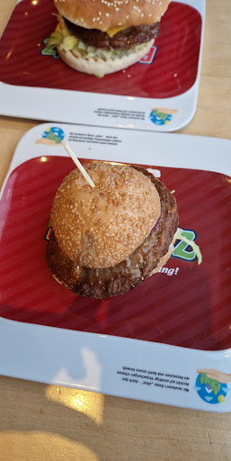 Negativ: Die Teller sind mit Pünktchen bedruckt und sollen eventuell einen "coolen" Eindruck machen. Leider sieht das für mich ziemlich suspekt aus und ich würde weiße Teller mit einem "cleanen" Look bevorzugen. Der "Cheese" Burger ist vielleicht für einige sehr schmackhaft für mich aber eher grauenvoll. Der Käse ist billig, Mayonnaise zu viel und das Patty zu fettig, wobei man sagen muss: das Fleisch ist einwandfrei! Des weiteren schmecken die Pommes so, als würden sie mit so genannten "Curly Fries" zusammen frittiert, wodurch die Pommes leider ihren einzigartigen Geschmack verlieren, sonst sind die Pommes nicht weiter gewürzt. Meinem jüngeren Essentester gefiel das Essen, wobei ich mich überhaupt nicht anschließen konnte. ACHTUNG: Für die Benutzung der Sanitäreinrichtung werden nochmals 0.50 € verlangt - ein No-Go finde ich. Alles in Allem ist zu berücksichtigen, dass dieses Lokal nur eine Raststätte ist und dass meine Erfahrungen verschieden interpretierbar sind. Ich bevorzuge dann doch eher die Frenchise-Kette direkt neben an, aber JEDEM...