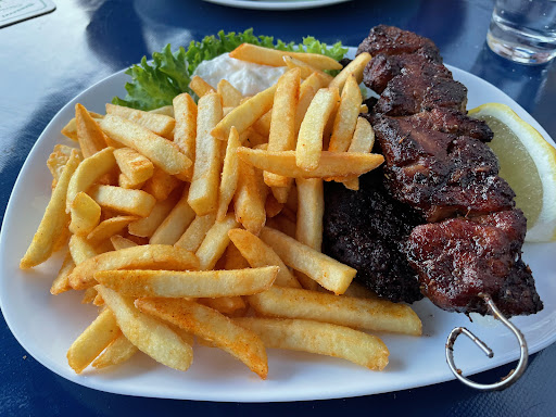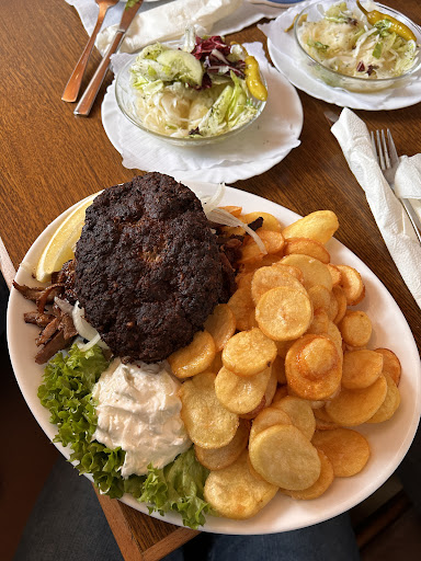 Read moreAufgrund der guten Bewertungen hatten wir uns kurzfristig entschlossen griechisch essen zu gehen. Das Lokal war gut gefüllt, daher hatten wir uns auf Wartezeit eingestellt. Am Ende war das über eine Stunde - für uns nicht mehr akzeptabel. Wie und direkt anfangs gesagt wurde, war das Gyros ausverkauft - kein Problem. Habe dann einen Teller mit einem Souvlaki und einem Bifteki bekommen (siehe Bild). Die Pommes waren versalzen und das Fleisch viel zu dunkel. Es war nicht trocken und überbraten - somit war vermutlich das Bratfett schon gut benutzt. Berechnet wurde dann für diesen Teller 20,-. Das kommentiere ich besser mal nicht. Zusammengefasst besteht für uns eher keine...