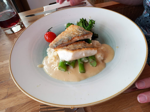 DINNER On the second day we had dinner at the hotel. We had nice table with great view. There were 3 service employees who were serving us. The menu is not that big but that is good. There is something for everyone. We all took different dishes and even 2 dishes from the seasonal menu. The food was not bad. A bit too expensive. Everything tasted good but not extremely great. The young waiter was nice but seemed a little bit nervous. They couldn't remember who ordered which dish and mixed up all of us ( no big deal at all in my opinion but I wanted to mention it) We were all laughing with the service staff. I want to say that they were the nicest ones in there. Thanks to the young waiter and waitress and to the bit older waitress who had some nice wine recommendations and was talking and laughing with us. Good atmosphere.