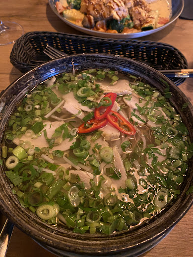 Schön servierte Standardgerichte. Das Restaurant wurde uns von Freunden empfohlen. Unser Geschmack hat es leider nur zum Teil getroffen. Obwohl ich von vorne hin anmerken möchte, dass die Präsentation der Gerichte sehr schön war. Wir waren zu viert da, an einem Samstagabend. Der Tisch würde zwei Wochen vorher reserviert. Da hat es schon mit dem Spaß begonnen. Die Bedienung am Telefon hat kaum verstanden was wir gesagt haben, am Ende waren alle Angaben mindestens dreifach wiederholt. Es war auch total schwer die Bedienung zu verstehen. Dabei spielte nicht nur eine extrem schlechte deutsche Aussprache die Rolle, sondern auch sehr starke Hintergrundgeräusche. Deswegen waren wir bis zum letzten Moment unsicher, ob die Reservierung überhaupt steht. Vor Ort haben wir 10 Minuten lang versucht zu klären, wo wir sitzen dürfen. Und obwohl wir einen Tisch bekommen hatten, bin ich immer noch unsicher, ob die Reservierung wirklich gefunden wurde, oder ob wir einfach Glück hatten, dass es einen freien Tisch gab. Am Tisch haben wir 10 Minuten aufs Menü gewartet. Und nur nachdem ich ausdrücklich darum gebeten hatte, haben wir es bekommen. Im Prinzip war es ganze Zeit so, dass man irgendwelche Handzeichen geben sollte, um bemerkt zu werden. Wir dachten am Ende des Abends, dass das Restaurant-Team einfach sehr stark unterbesetzt ist. Der Tisch, den wir bekommen haben, war dreckig (siehe Fotos). Und wurde nur dann sauber gemacht, nachdem wir darum gebeten haben. Obwohl der Tisch schon frei war, als wir reinkamen und unsere Reservierung 10 Minuten lang gesucht wurde. Das heißt, dass das Personal genug Zeit hatte, es selbst sauber zu machen. Das ganze Laden ist dunkel, und alles mit den Fake-Blumen geschmückt. Was an sich auch nicht so schlimm ist, aber ich verstehe nicht, warum sie im Wasser stehen (siehe Fotos). Und dann kommt das Highlight - die Toilette. Das ist eigentlich normalerweise nie das Thema, das ich anspreche, aber... In dieser Preisklasse war das die dreckigste Toilette, die ich je gesehen hatte. Da kommen wir wieder zum Punkt mit der Unterbesetzung. Das Essen an sich war gut. Die Kokosmilch Suppe war super lecker, obwohl ein bisschen zu heiß serviert. Außerdem haben wir das Panierte Hähnchen und der Wakamesalat als Vorspeisen. Beides auch einwandfrei. Als Hauptgang haben wir alle Sushi bestellt. Davon waren drei gebackene Varianten. Aus meiner Sicht waren sie darüber. Der Fisch soll doch nicht so durch sein, obwohl sie gebacken wurden. Die normale Inside-Out waren okay, eine von 3 mich begleitenden Personen fand die Mayo-Sauce zu scharf. Die anderen zwei fanden sie top. Ich selbst hatte mir ein Nigiri Set gegönnt. Einerseits war alles frisch und schön serviert. Die Lachs und Thunfisch Nigiris waren großzügig mit Fisch bedeckt. Leider war der Thunfisch ungünstig geschnitten und deswegen unbequem zu essen. Die Jakobsmuscheln Nigiri waren für meinen Mund eine Nummer zu groß. Und ich würde mich mehr Aal bei den Aal Nigiris wünschen. Insgesamt war das Essen aber definitiv das beste in dem Laden. Und wenn alles andere passen würde, würde ich wahrscheinlich die genannten Nachteile einfach ignorieren. Wir haben mit Trinkgeld 40€ pP bezahlt. Und das ohne Alkohol. Und eine Person hat keine Vorspeise gehabt. Aus meiner Sicht war es zu teuer. Zusammenfassend: es war okay, aber keine...