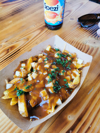 Das Essen ist massiv überteuert!! Ein kleiner Burger mit Salat, Tomate und einer hauch dünnen, kleinen scheibe Fleisch, knallharte 9,-€ Die Fritten sind wirklich überhaupt garnichts besonderes. Das Pulled-Pork ist geschmacklich leider penetrant und Nachhaltig im Abgang. Die Kreuterremulade war leider ein Witz, ebenso wie der Krautsalat, wobei dieser bei allem Übel noch am besten geschmeckt hat.