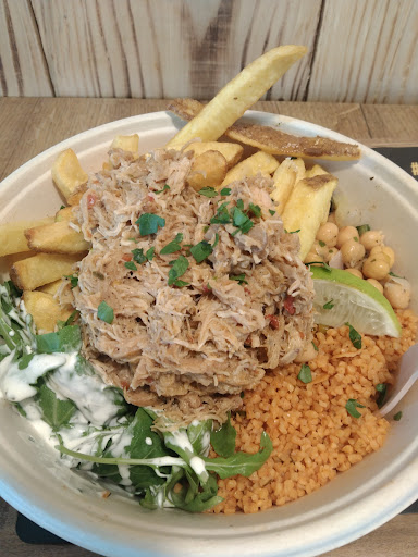 Read moreOrdered the Biochicken bowl, it‘s basically “OK“ but the chicken is very very very little, almost nothing. It is a mishmash of Mediterranean, mostly Lebanese, Syrian, Palestinian bases for a meal with a bit of mashed chicken and some french fries. I love Mediterranean food, but this is a bad mishmash with almost no chicken and overpriced for the quantity and ingredients. 5/10 at best. The staff is very friendly thou, that is the best part probably. Note: I added the onions from a second plate we ordered, it does not come...