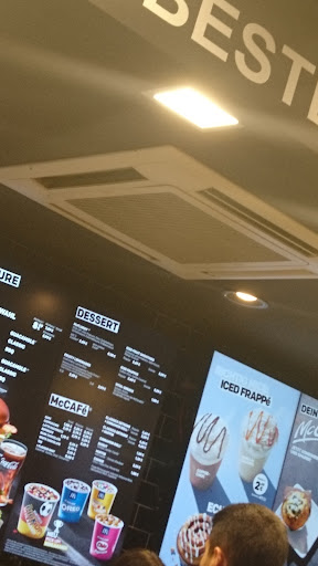 Read moreWenn ich könnte, würde ich -5 Sterne geben. Ich war nach einem kleinen Unfall dort, nachdem ich aus dem Krankenhais kam. Dementsprechend war ich mit Krücken unterwegs. Die Tür war so schwer auszumachen, dass meine Mutter (welche mich aus dem Krankenhaus abgeholt hatte) die Tür öffnen musste. Dann haben wir ca 20 min. an einer freien (!!!) Theke gewartet das endlich unsere Bestellung aufgenommen wird. Auf unsere Bestellung haben wir dann wieder ca 10-15 min. gewartet. Dann war die Kaffeemaschiene im McCafé total verdreckt so das meine Mutter sehr großen Ekel hatte ihren Kaffee anschließend zu trinken. Anscheinend war auch die Mitarbeiterin dort nicht richtig in die Maschiene eingewiesen worden, da sie die Tasse immer nur halb unzer die Kaffeemaschiene stellte und sich dann wunderte wesshalb der halbe Kaffee an der Tasse vorbei lief. Mein Vanillemilchshake war bereits halb geschmolzen und es waren spuren von irgendeinem Saft/Sirup drinnen, sodas er sehr seltsam schmeckte. Generell war es dort sehr dreckig und ein Mitarbeiter wurde vor allen (Mitarbeitern und Kunden) von einem Chef oder was diese Person darstellen sollte angemeckert und zurechtgewiesen. Ich würde dort in dem McDonald's nicht noch einmal essen gehen. Da gibt es weitaus sauberere und freundlichere McDonald's in...
