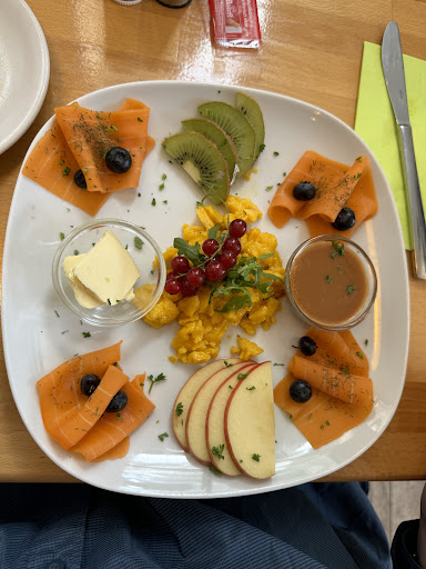 Read moreWe went to this restaurant for the vegan pancakes! There was an initial kitchen error where one of our sandwich platters (ingredients on the plate and you make your own sandwiches) was brought out as the non-vegan version and it took a while for the replacement to arrive. That said! There was a large menu with great variety and every category had a vegan option or two. The food was excellent and we tried a lot of it, including a bagel sandwich (they have vegan spreads), potato pancakes, vegan fruit pancakes, and hot drinks (peanut butter latte and hot chocolate). The atmosphere would have been great except for the yellow jackets and the smokers outside. There were many yellow jackets which caused us to move inside when a table became available. There are clean...