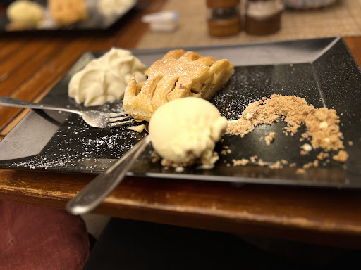 The highlight of our visit was undoubtedly the apple strudel, served fresh and warm. Paired with a perfectly crafted cappuccino and a rich, aromatic coffee, it was the ideal afternoon treat. The strudel’s flaky crust, combined with the sweet and tender apples, made each bite a delightful experience. The coffee, expertly brewed, provided a smooth and comforting finish to our meal.